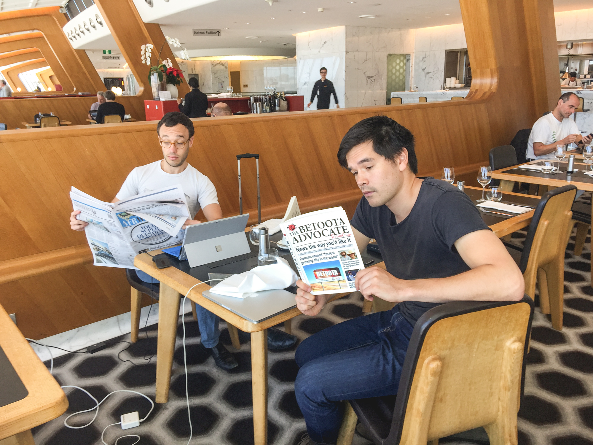 So turns out it was good. A few days later, we received word that YC would like us to fly to Mountain View for a proper interview. Outside the team, we kept this news quiet in our Sydney coworking space, Fishburners. We didn't want to raise expectations, as we knew that most companies who were interviewed by YC were ultimately rejected. So one day Ed and I mysteriorusly disappeared to board a flight.