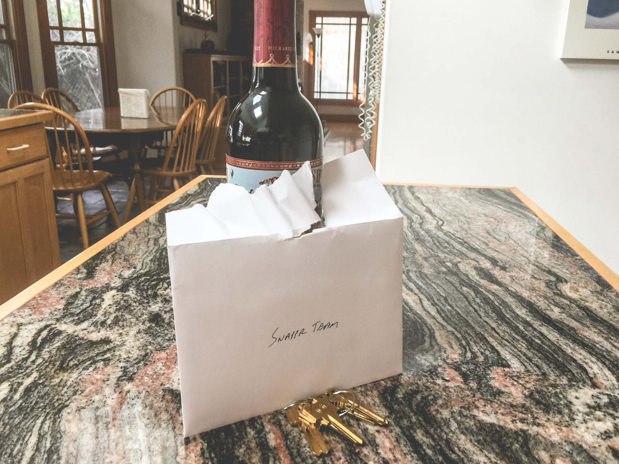 On arriving in Mountain View, we were greeted with a nice note, a bottle of wine, and many keys from our new landlord.