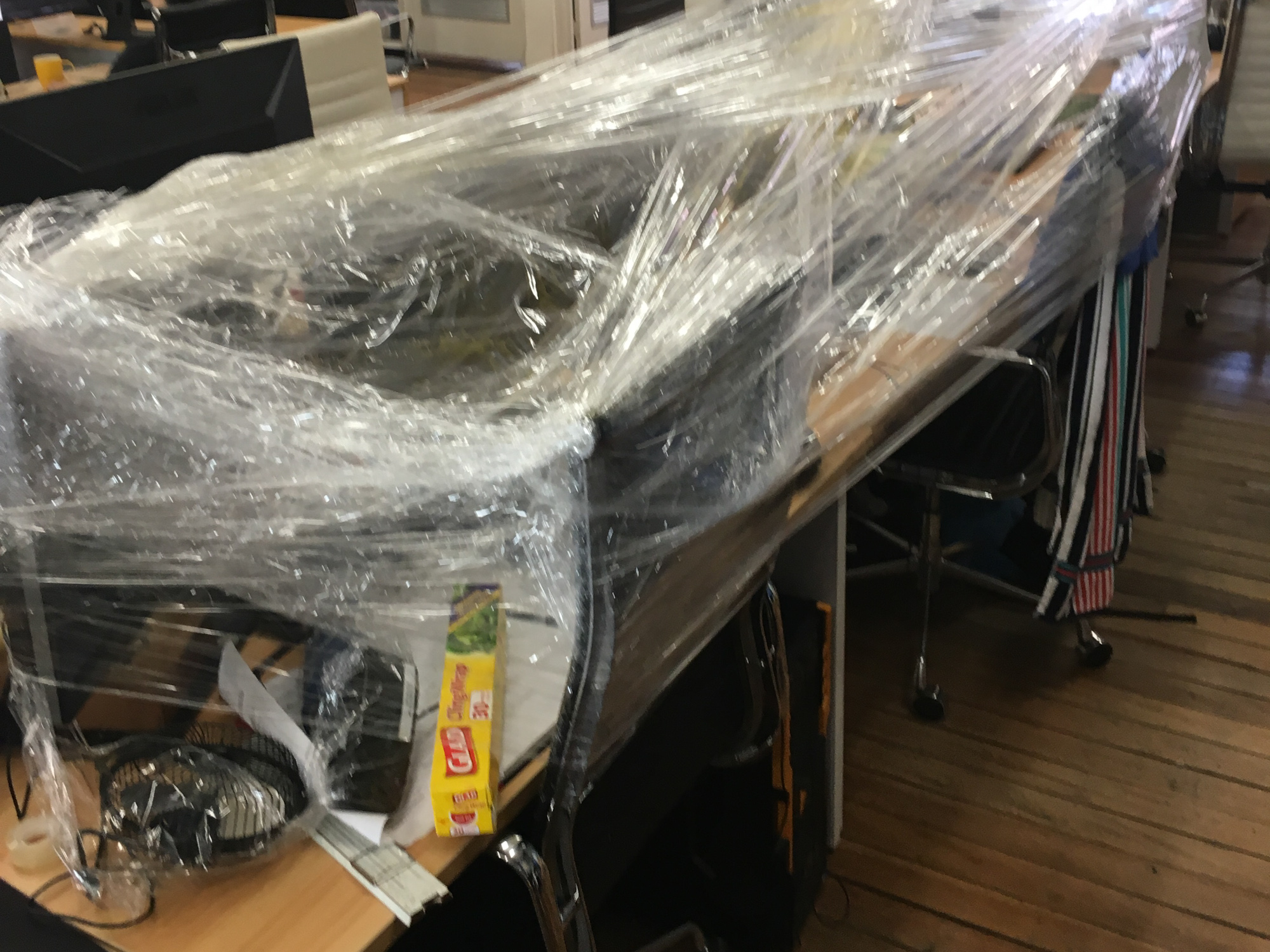 It wasn't long until the end of the year came around and it was time to relocate to Mountain View for the YC program. One of the larger startup teams at Fishburners, Premonition, with whom we'd been in a 'prank war' of sorts for many months, took the liberty of cling-wrapping our entire office for us the day before we were due to move out!