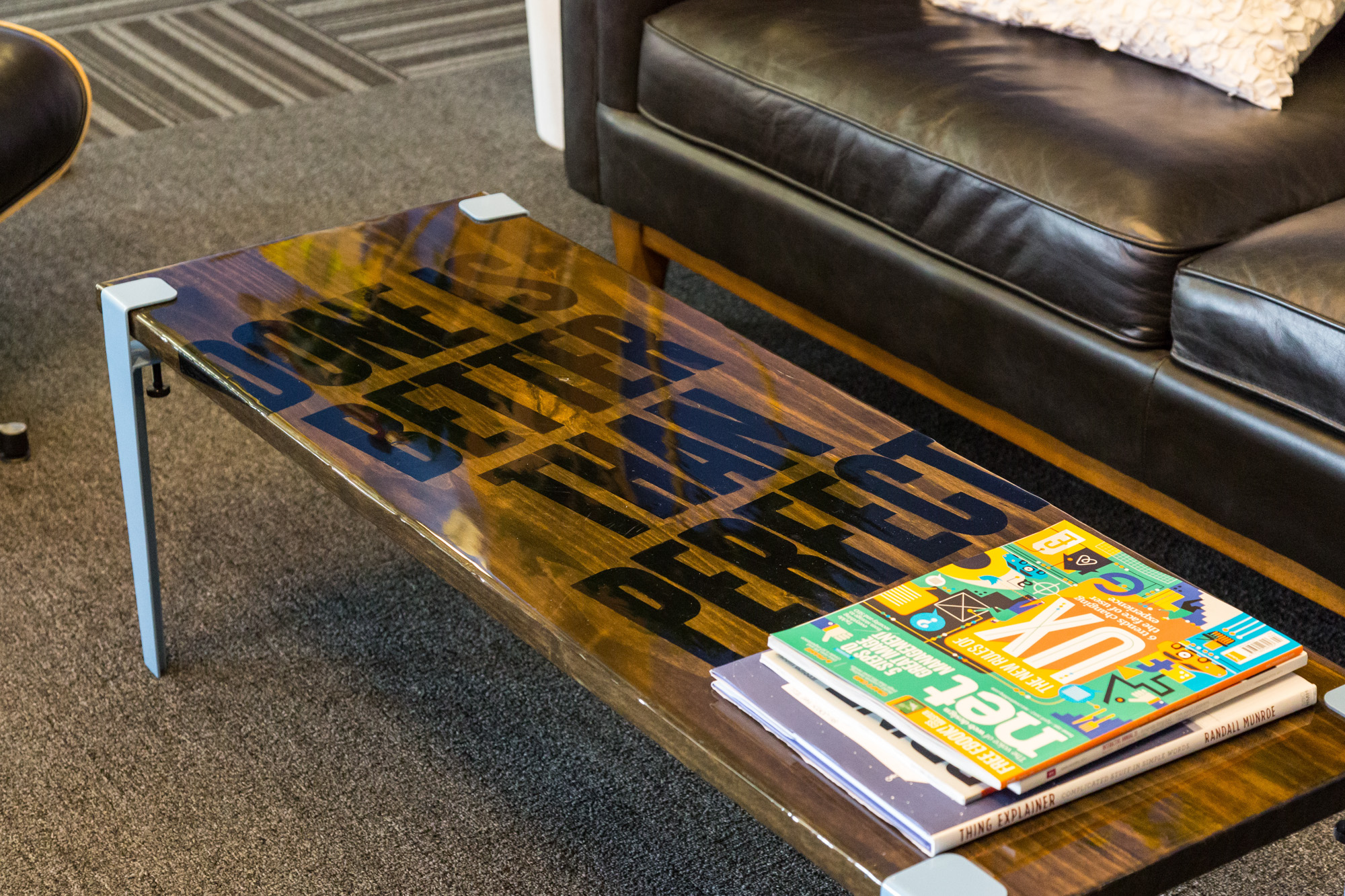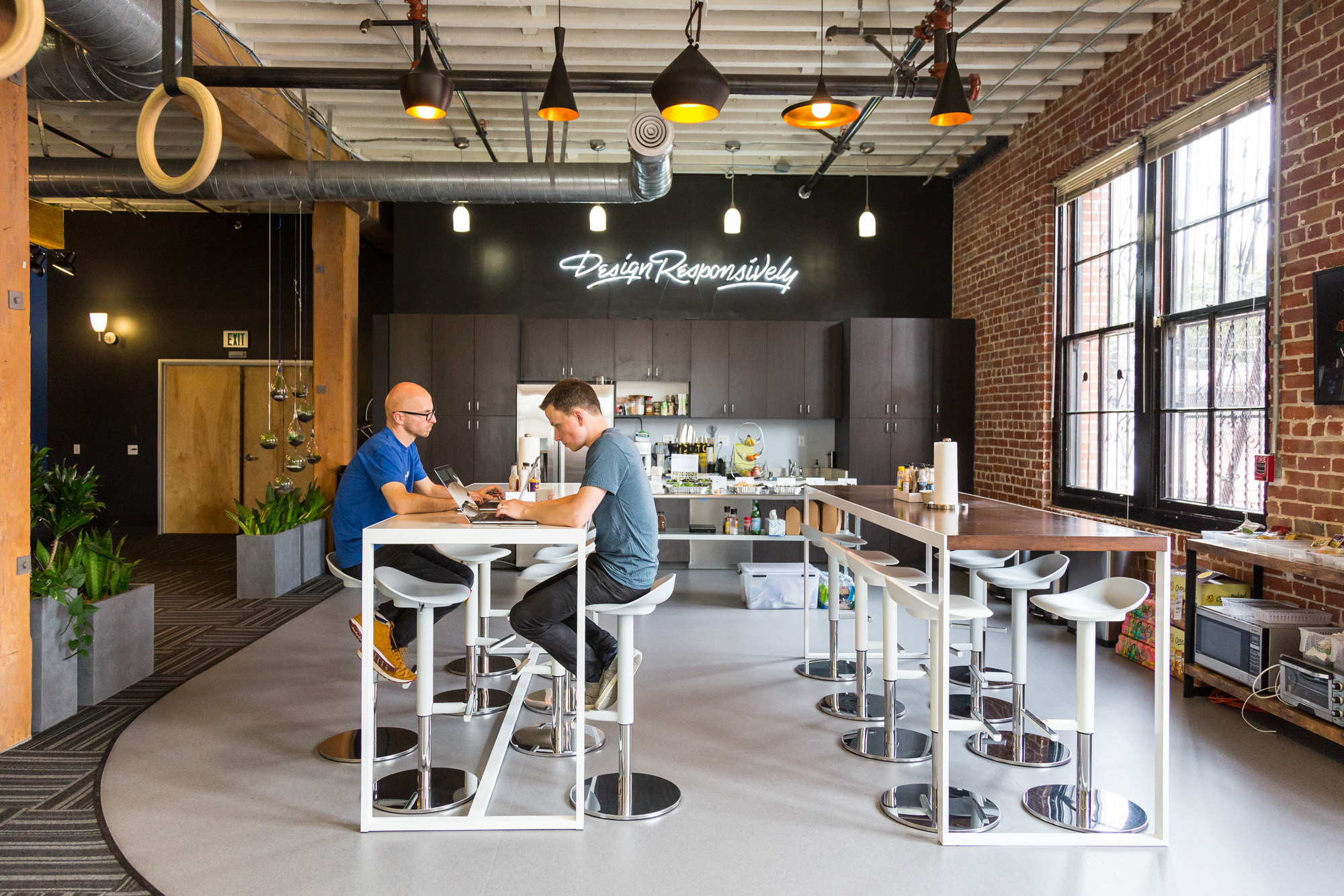 Two of the three co-founders, Vlad and Sergie, are focused intently on their laptops in the office kitchenette as I come in. The company’s punny slogan hangs above them in the background, lit up in neon: “Design Responsively”. Feeling the need to whisper, I disturb them from the Zen-like trance that seemed to have a hold on the office.