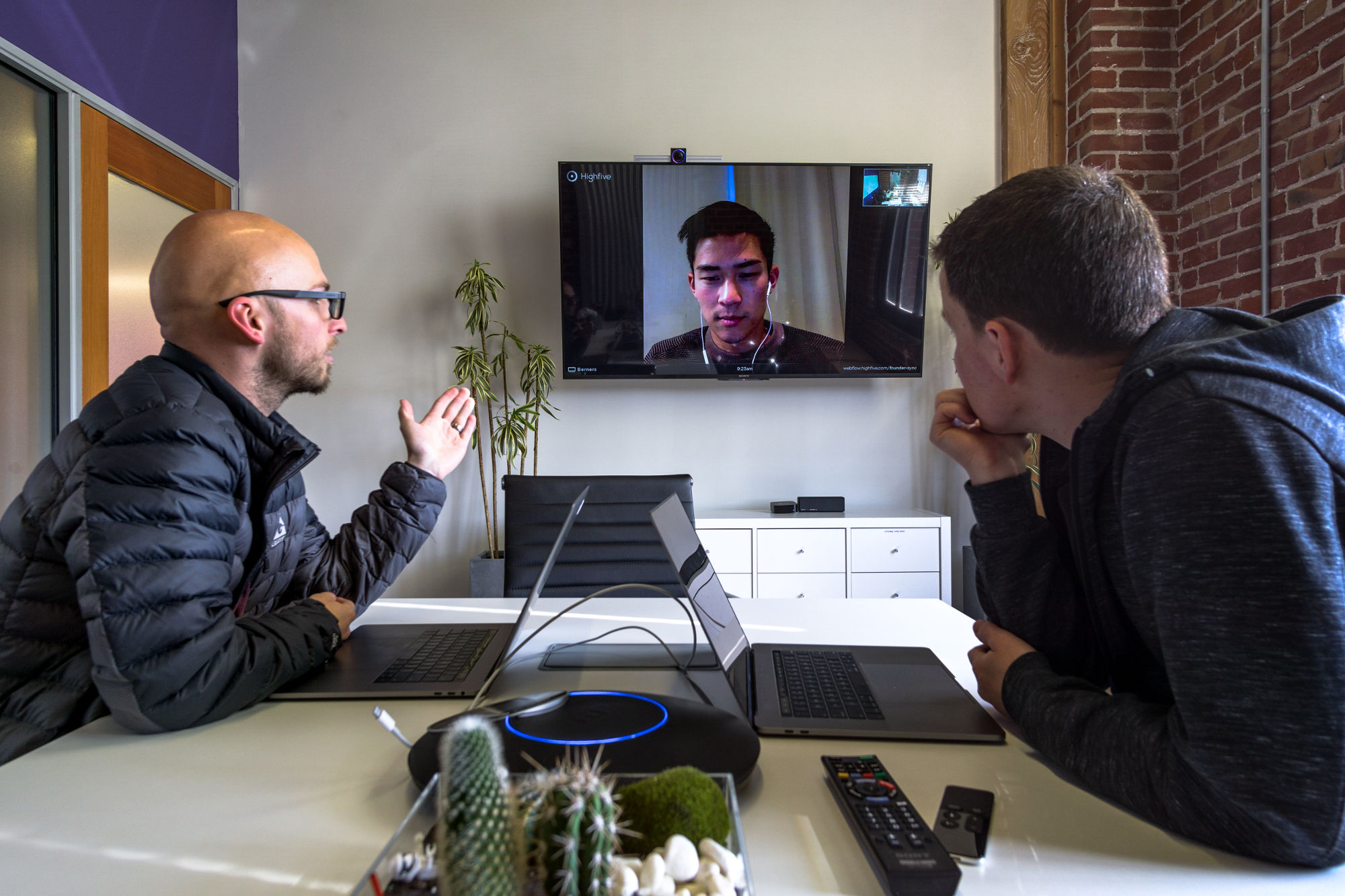 The strong culture of remote work also finds it way into the founding team itself. Sergie and Vlad patch in via Google Hangouts with founder Bryant, who is currently working from Berlin.